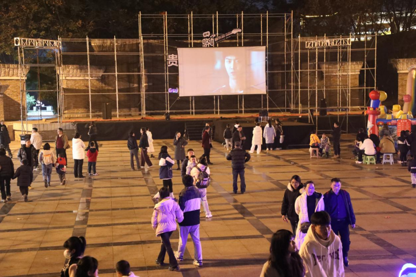 1月1日元旦佳节,由花溪区委宣传部主办、花溪区旅文公司承办的“影”为有你、“跃”享时光——在花溪公园音乐广场举行了坝坝电影活动,吸引了众多居民和游客驻足观看,为节日增添了浓厚的欢乐氛围。