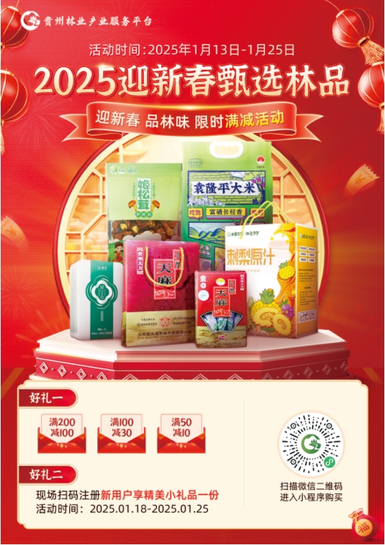 贵州省2025年新春林产品展销会将于1月18日至25日在贵阳市观山湖区西南商贸城2号馆拉开帷幕。